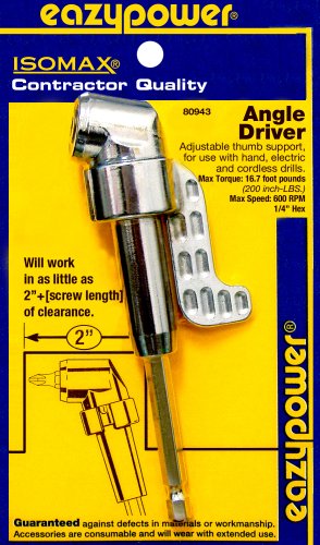- Adjustable thumb support support, for use with hand, electric and cordless drills. - 1/4 Inch. hex - Steel - Silver ColorEazypower 80943 Hex Offset Angle Driver, 1-Pack, 1/4-Inch Specification